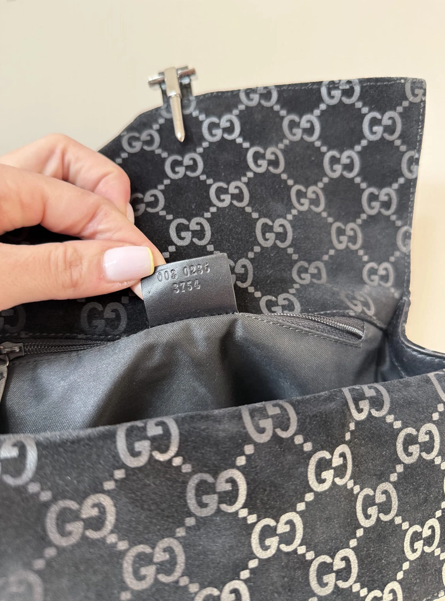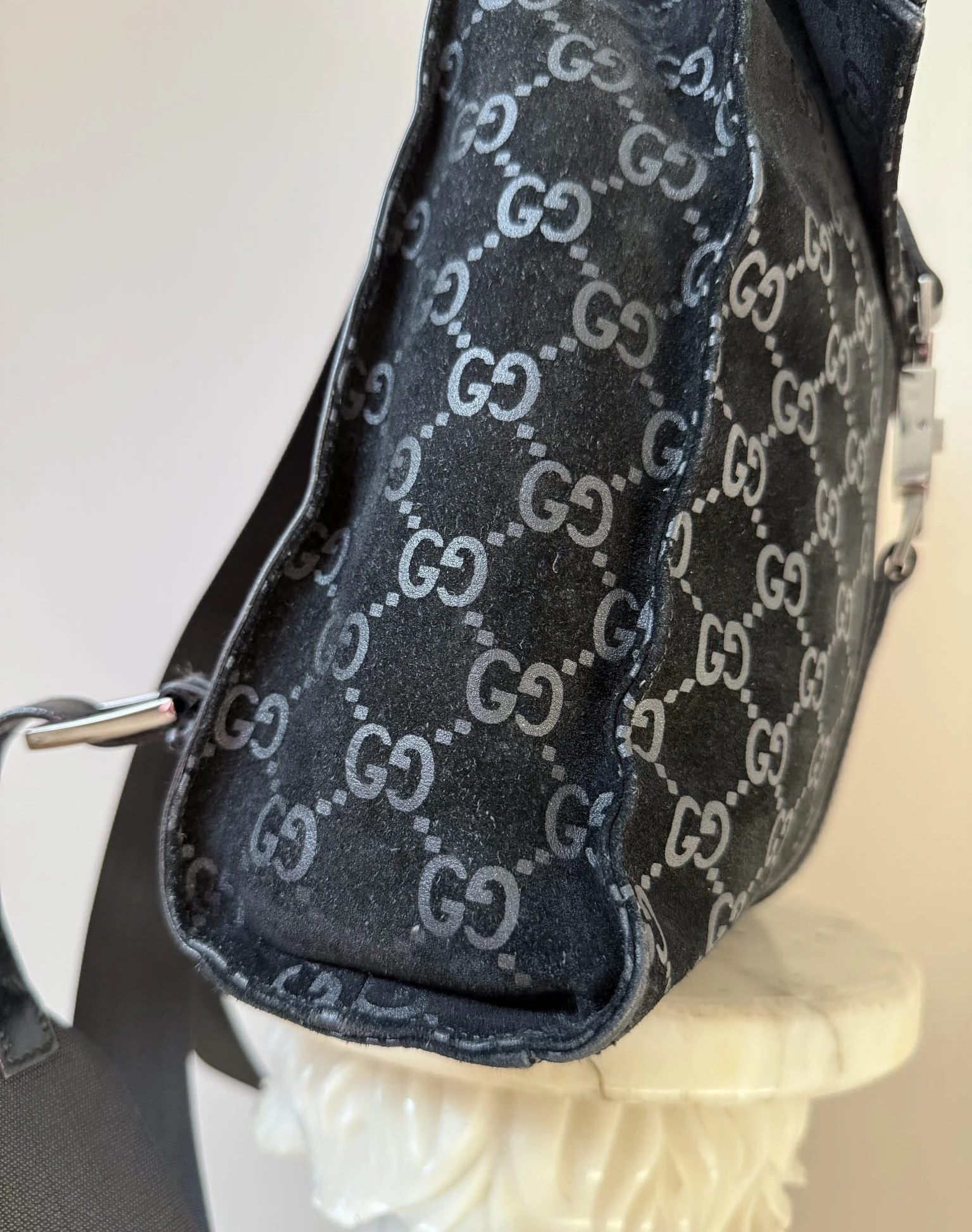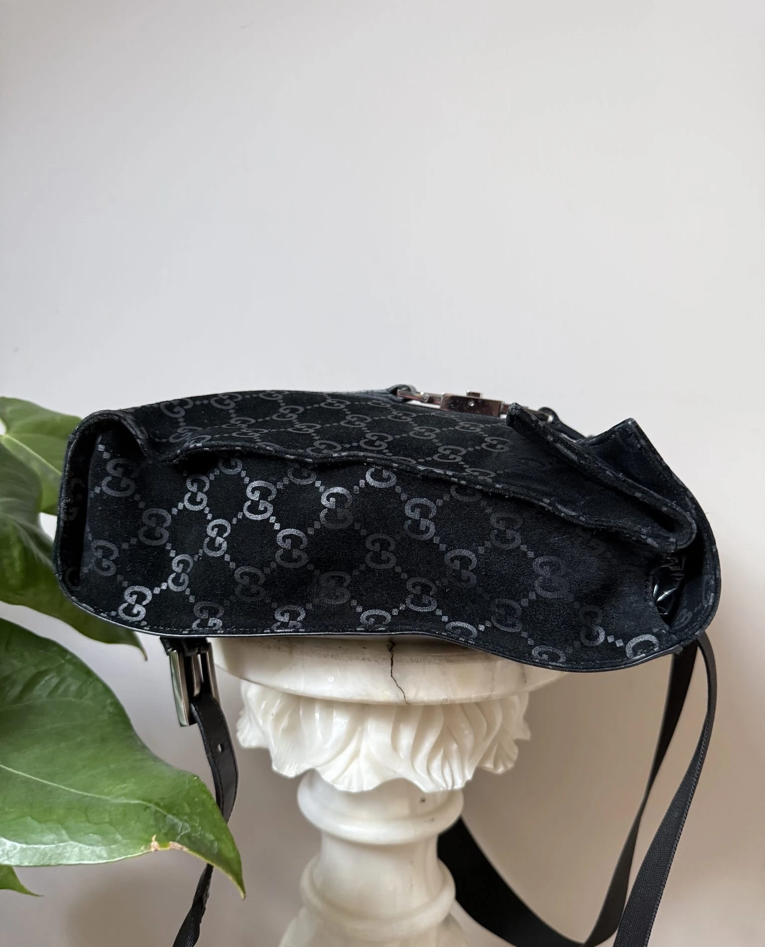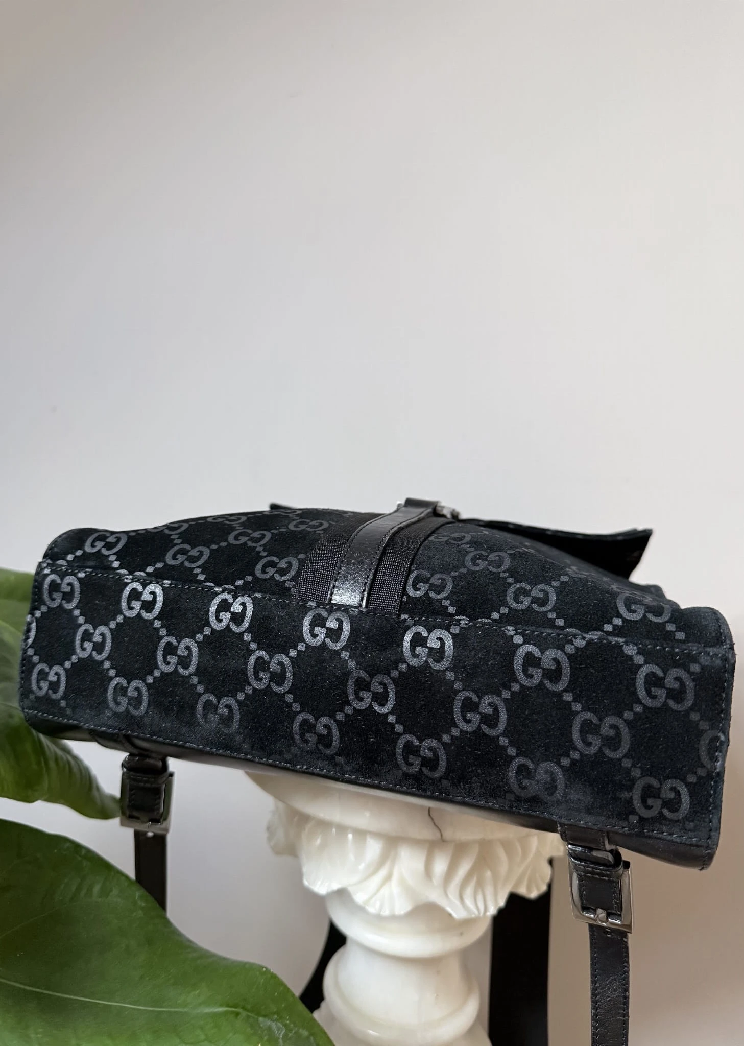 Unikatowy plecak marki Gucci wykonany z czarnego zamszu z monogramem „GG”. Model wyróżnia się minimalistycznym, a zarazem eleganckim designem, który świetnie łączy funkcjonalność z luksusowym wyglądem. Model Gucci Jackie nie jest często spotykany na rynku wtórnym.
