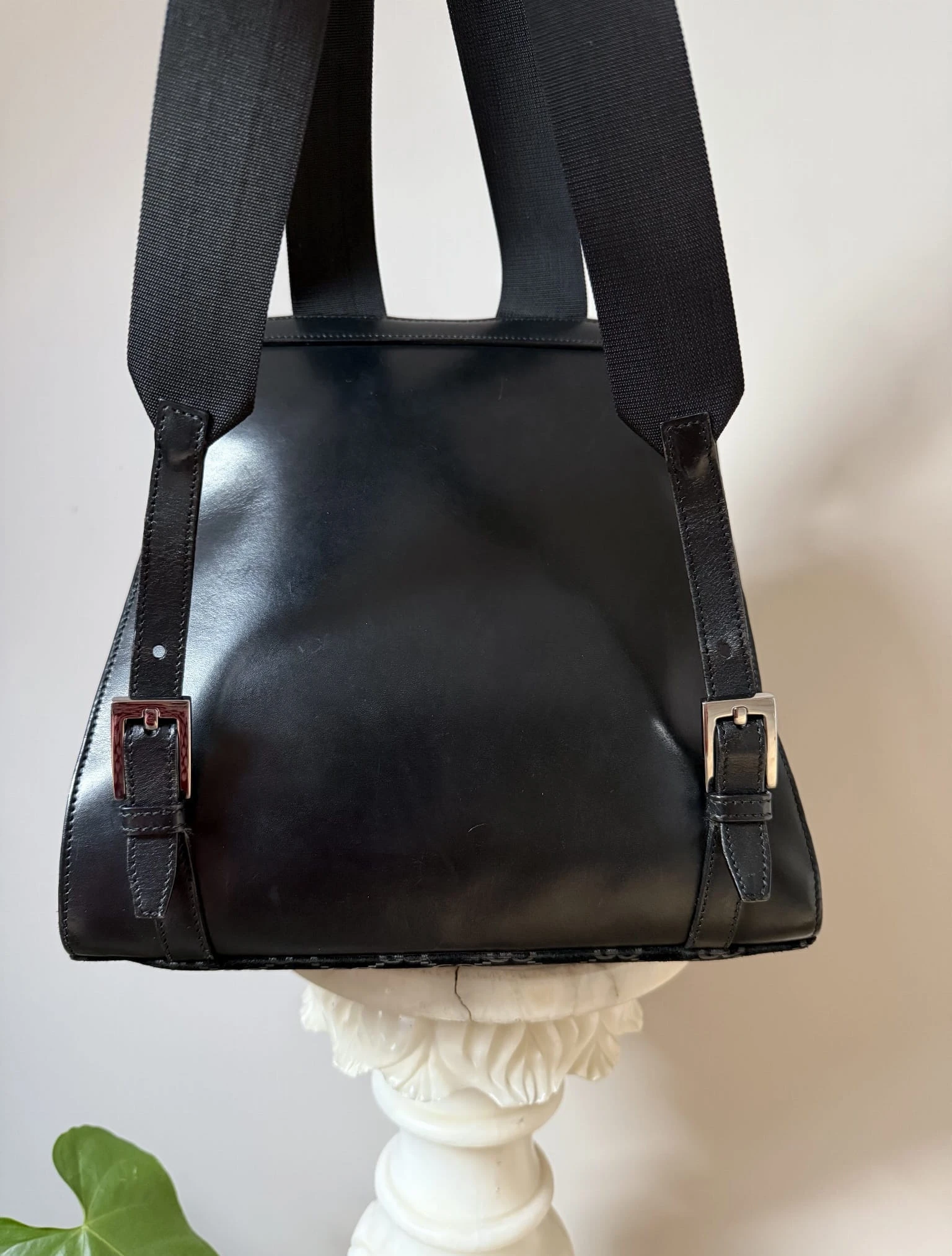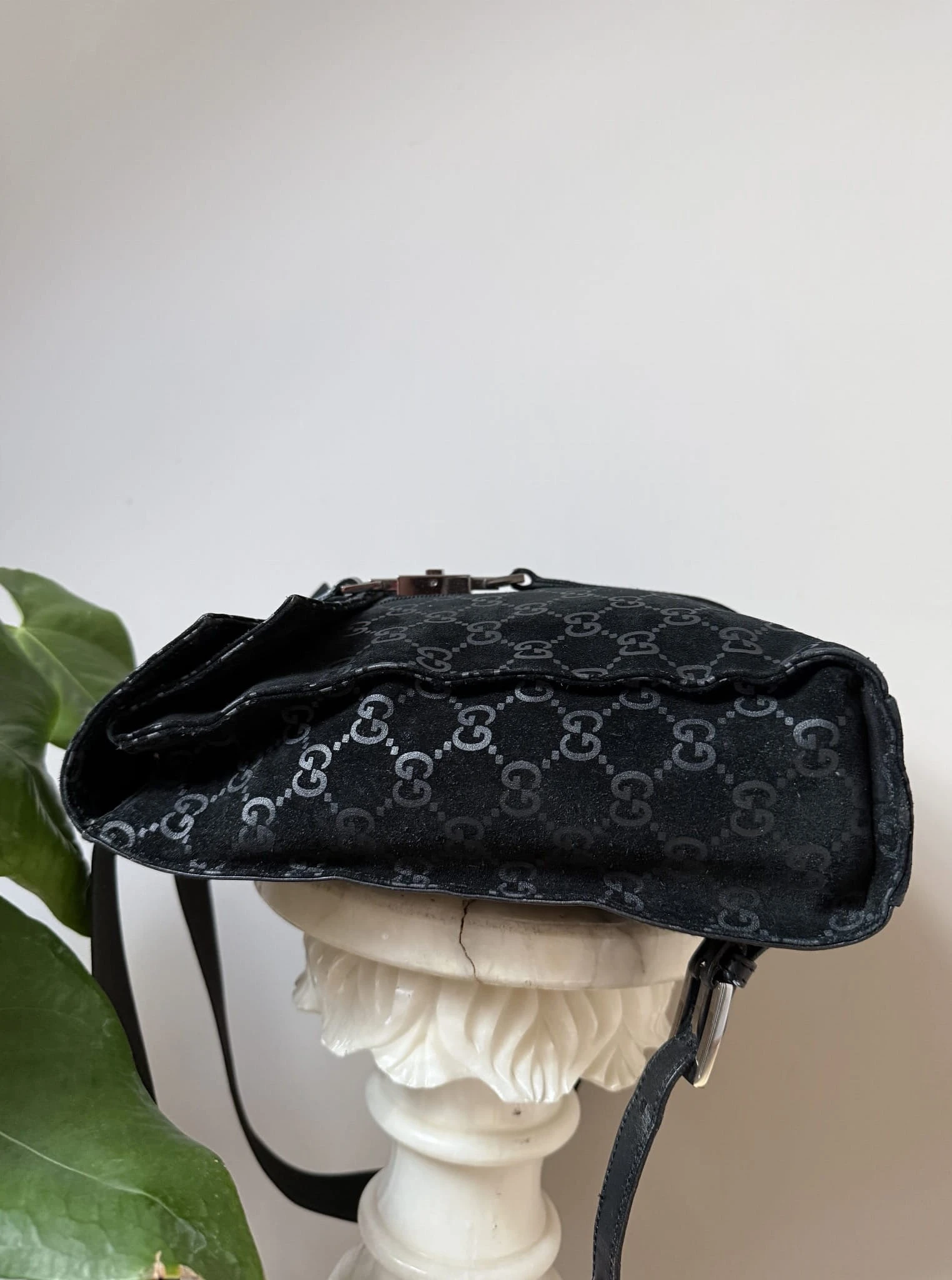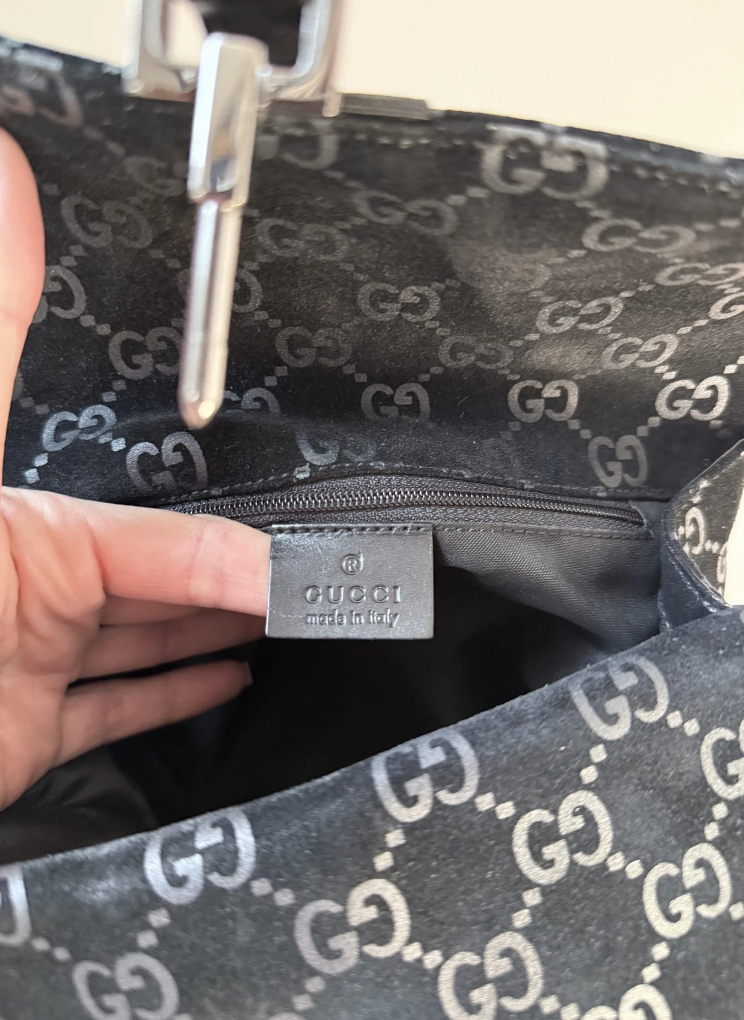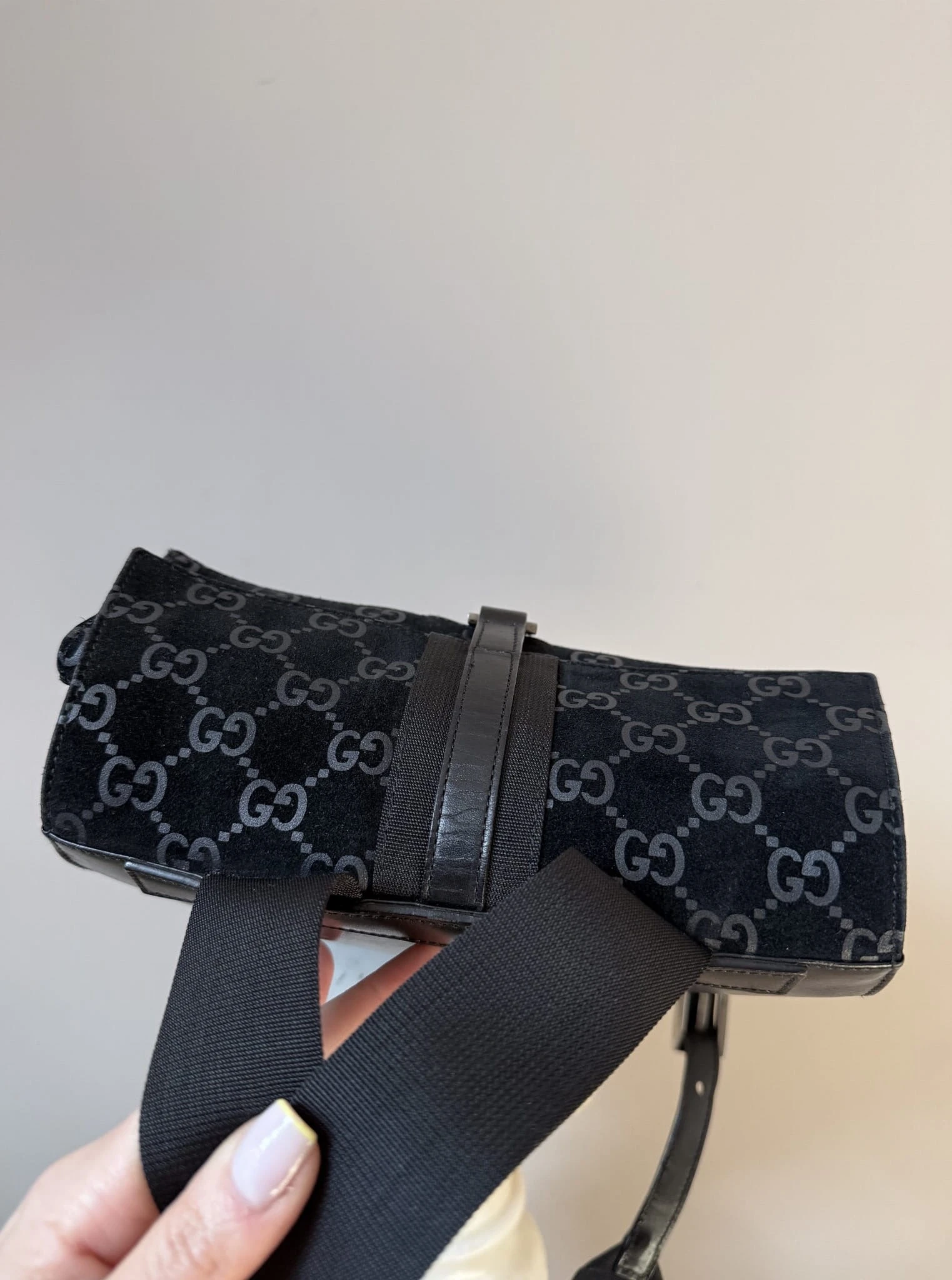 Unikatowy plecak marki Gucci wykonany z czarnego zamszu z monogramem „GG”. Model wyróżnia się minimalistycznym, a zarazem eleganckim designem, który świetnie łączy funkcjonalność z luksusowym wyglądem. Model Gucci Jackie nie jest często spotykany na rynku wtórnym.